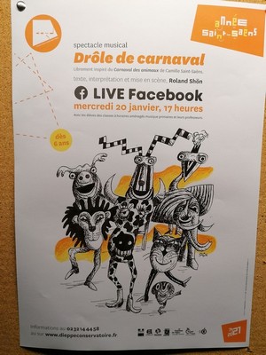 Spectacle CHAM des 19 et 20 janvier 2021 Du CE1 au CM2, dirigés par les professeurs de musique du conservatoire, les 75 élèves scolarisés en "horaire aménagé musique" à l’école Louis De Broglie se produiront mardi matin devant les écoliers Dieppois. Mercredi après midi, le spectacle sera retransmis en direct à partir de 16h sur la page Facebook du conservatoire. Pour vous donner un avant goût de la production, voici un petit film de 2min30 tourné à l’occasion d’une répétition des CM. (…)
