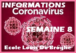 Cliquez directement sur l’image (ou Rubrique "INFORMATION" puis "ANNEE EN COURS" A consulter quotidiennement). RETOUR A L’ECOLE, DE-CONFINEMENT... Tout ce qu’il faut savoir. MESSAGE DU SAMEDI 16 MAI 1/ Rappel du message du 11 mai : A lire absolument avec votre enfant : le règlement du déconfinement. Document joint 2/ De petites vidéos très courtes pour vous expliquer le retour à l’école De Broglie à partir du 18 mai. Cliquez sur le lien suivant : (…)